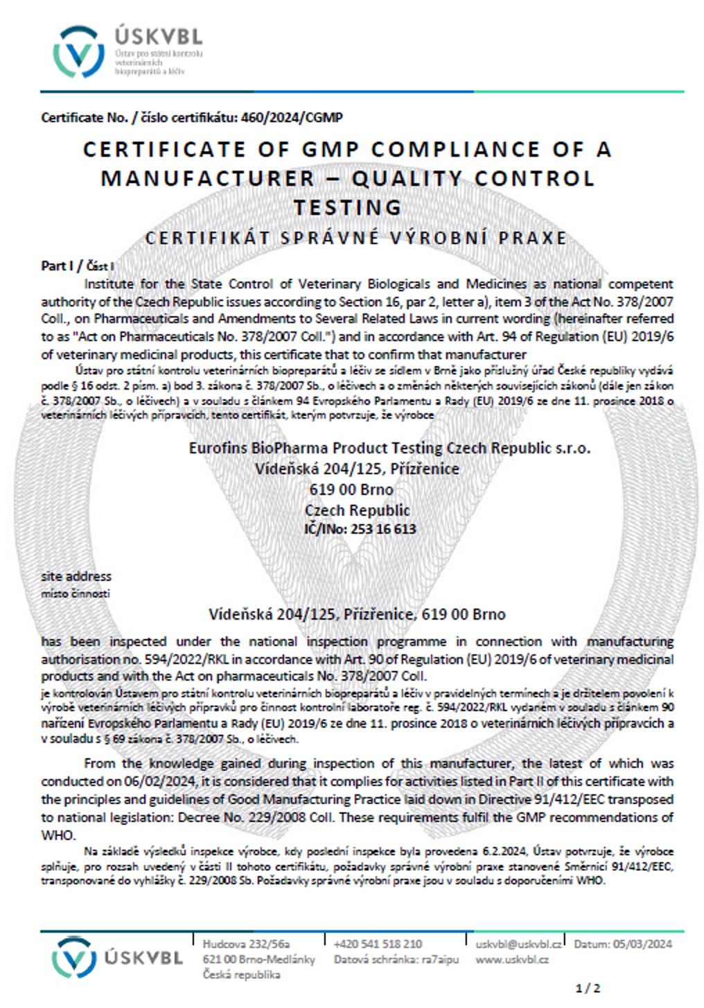 Quality control testing of Human Medicinal Products and quality control testing of imported medicinal products.